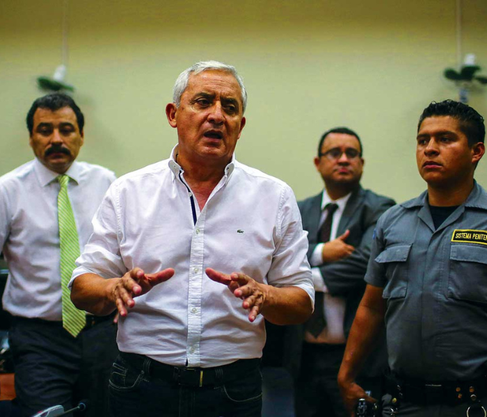 After an investigation spearheaded by the CICIG and the Attorney General’s Office, authorities arrested Otto Perez Molina, Guatemala’s former president, center, for charges of corruption and bribery, Guatemala, September 2015.