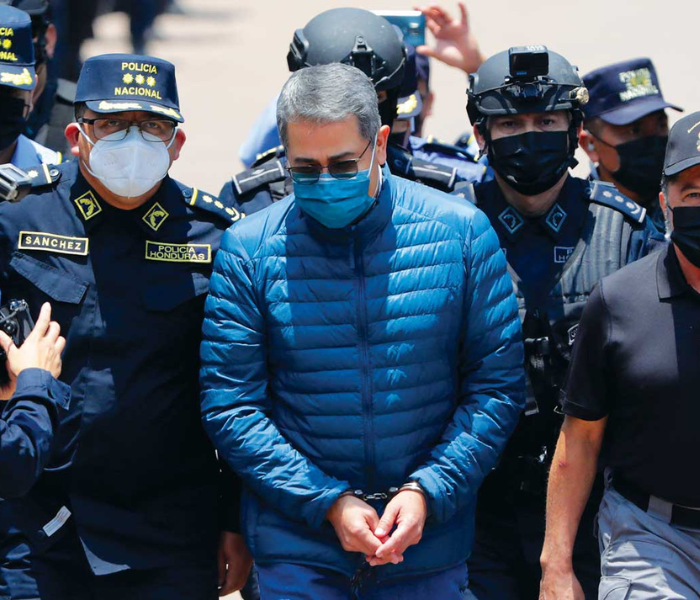 Former President of Honduras Juan Orlando Hernandez of the Police Special Forces, facing extradition to the U.S. to face charges of taking bribes from drug traffickers, Tegucigalpa, Honduras, April 2022.